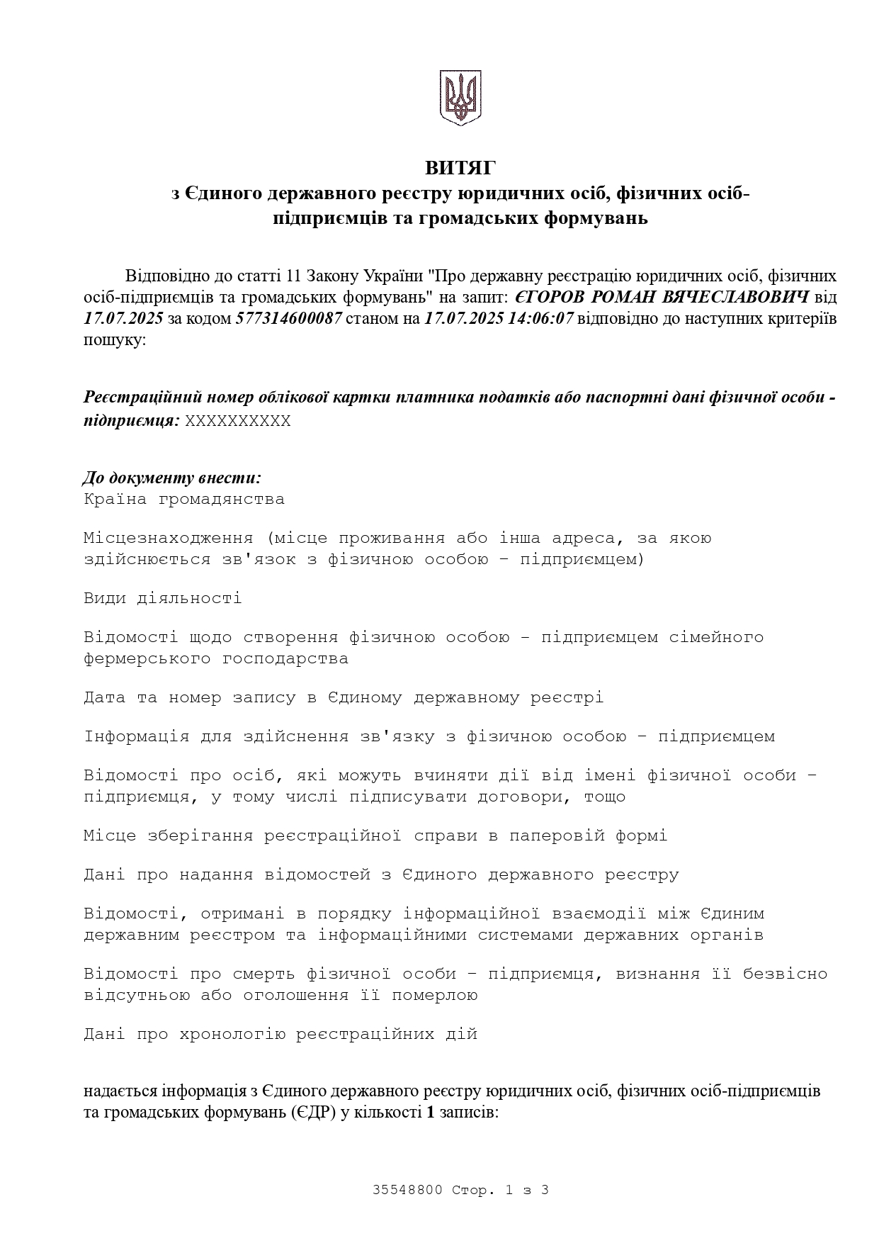 Профессиональная информация: