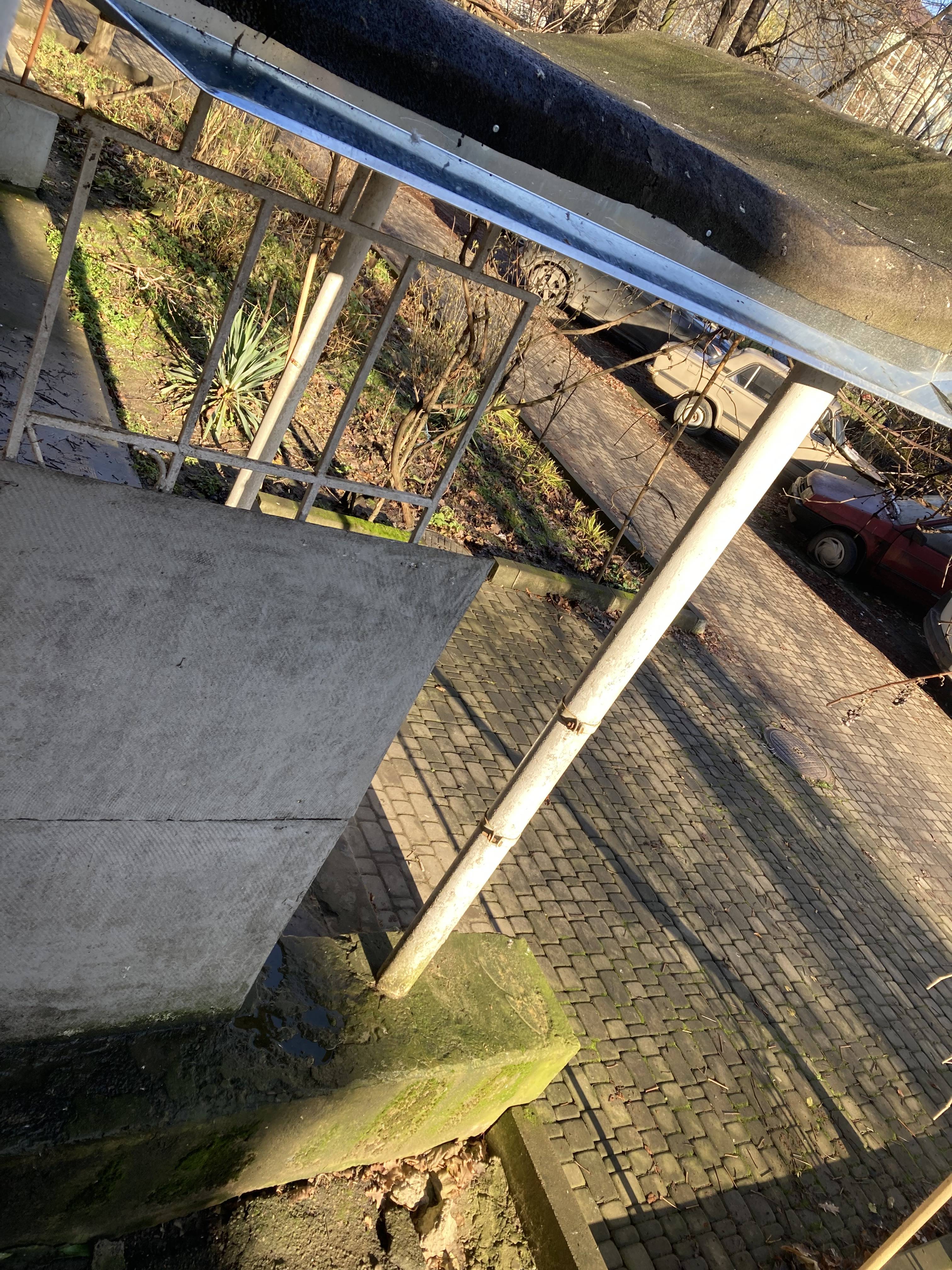 Установка водосточного желоба на козырек подъезда