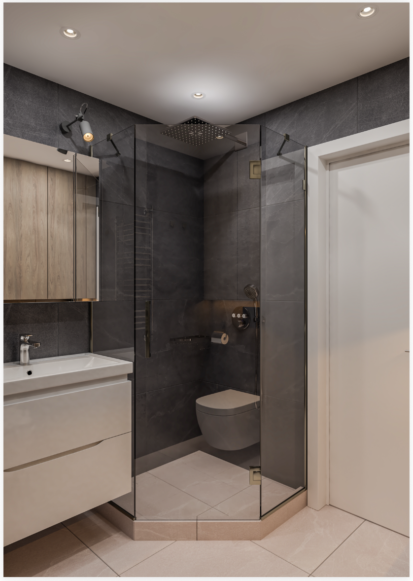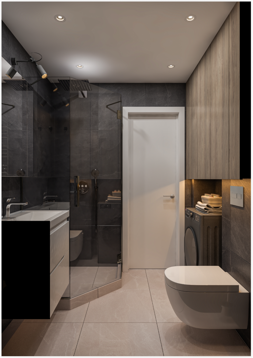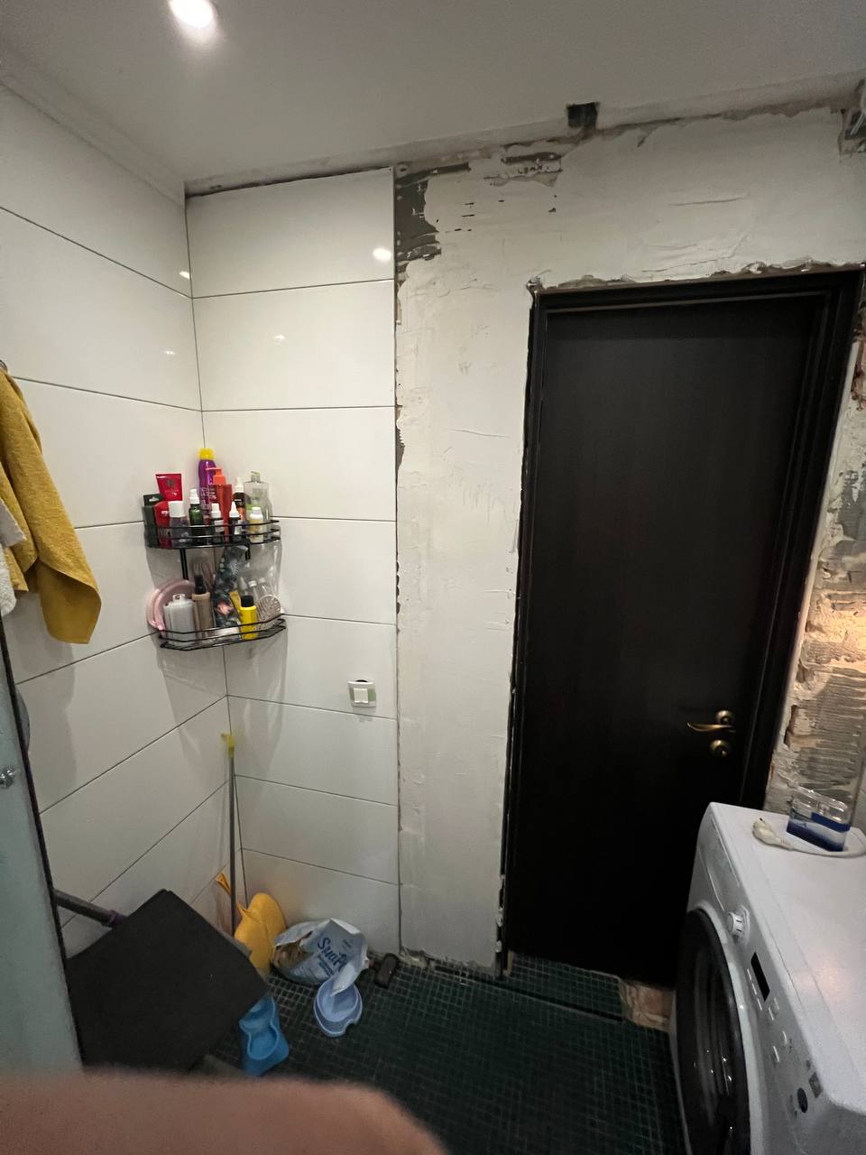 Треба зробити ремонт під ключ: демонтаж старої плитки, зробити нову розводку води, каналізації, електрики. Гіпсокартон, інсталяція, укладка плитки стіни і підлога + душова, встановлення сантехніки. Встановити двері МДФ. Стелю робити не потрібно. Все сміття треба вивезти.